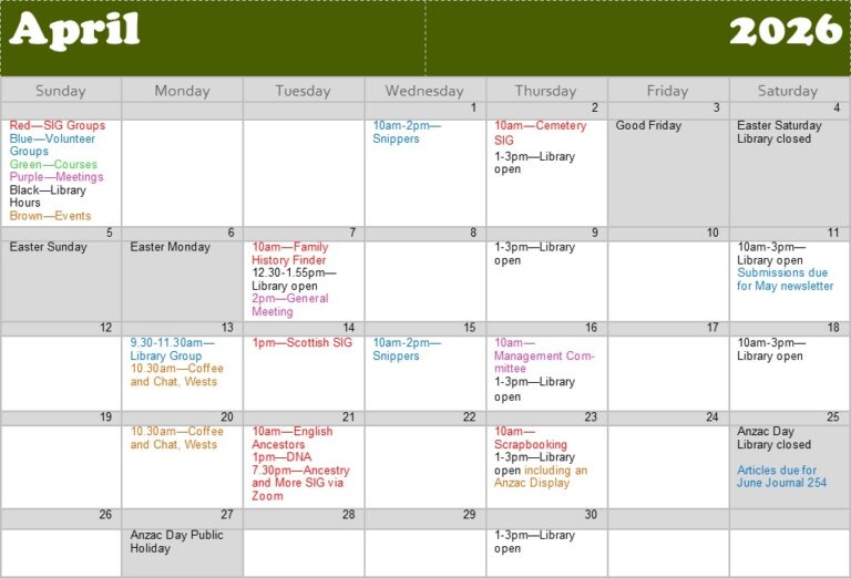 | Afternoon | Karen S | Rosalie B | Saturday 25 April |