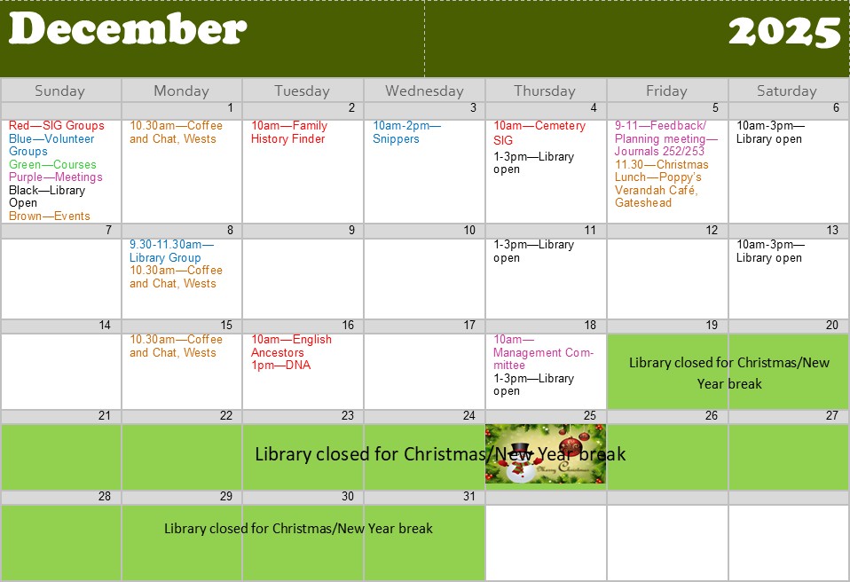 | Afternoon | Library closed | Christmas/New Year | Saturday 27 December |