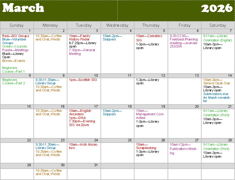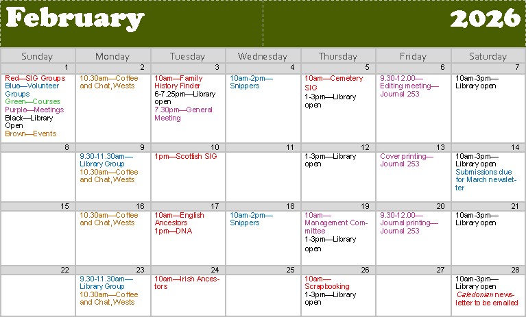 | Afternoon | Karen S | Rosalie B | Saturday 28 February |